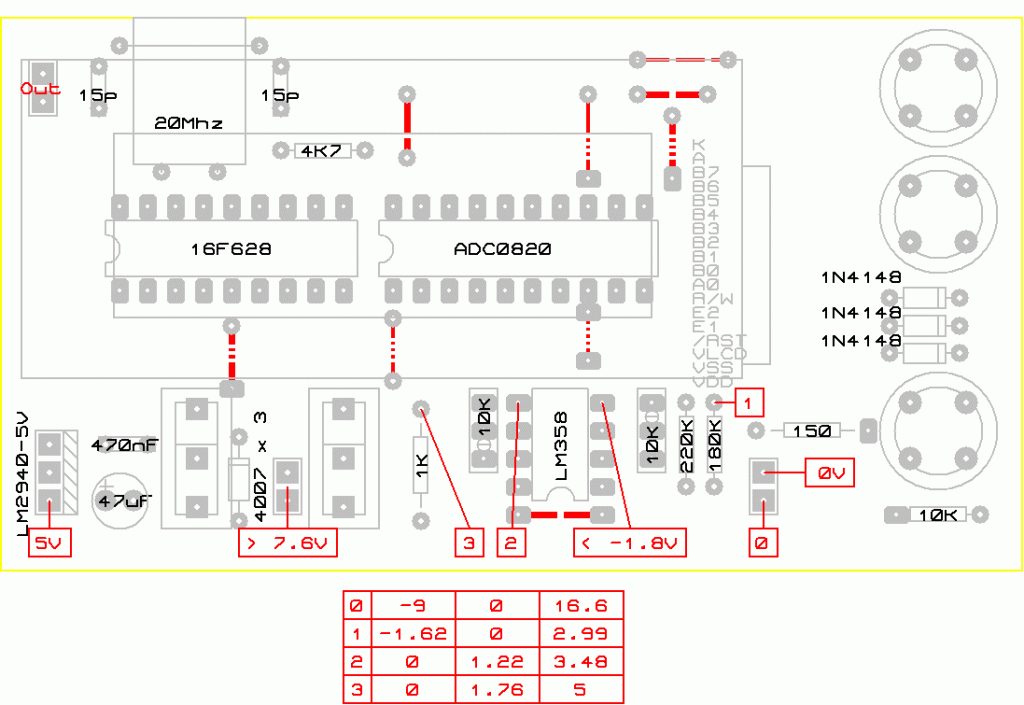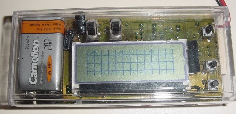 Ce mini oscilloscope est cadencé par un 16F628 poussé à 20Mhz. L’affichage est confié à un écran LCD de 128×32 très compact. Le résultat m’a dépanné plusieurs fois!